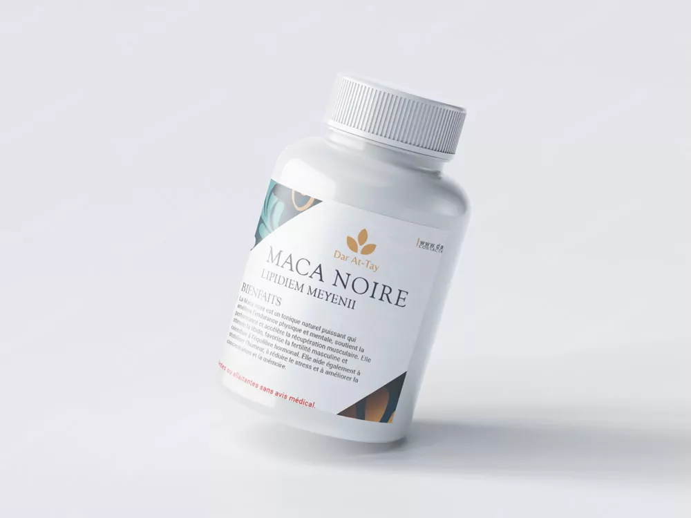 Maca noire bio Dar At-Tay, un complément alimentaire 100% naturel reconnu pour booster la libido, améliorer les performances physiques et mentales, renforcer l’endurance, la fertilité et la concentration. Puissant tonifiant naturel, la Maca noire est idéale en cas de fatigue chronique, baisse de motivation ou trouble hormonal. Elle soutient le bien-être global tout en favorisant l’équilibre du système nerveux et reproductif.